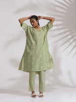 trueBrowns Green Cotton Floral Embroidered Kurta Co-ord Set