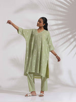 trueBrowns Green Cotton Floral Embroidered Kurta Co-ord Set Description Elevate your style with this green cotton floral embroidered oversized kurt...