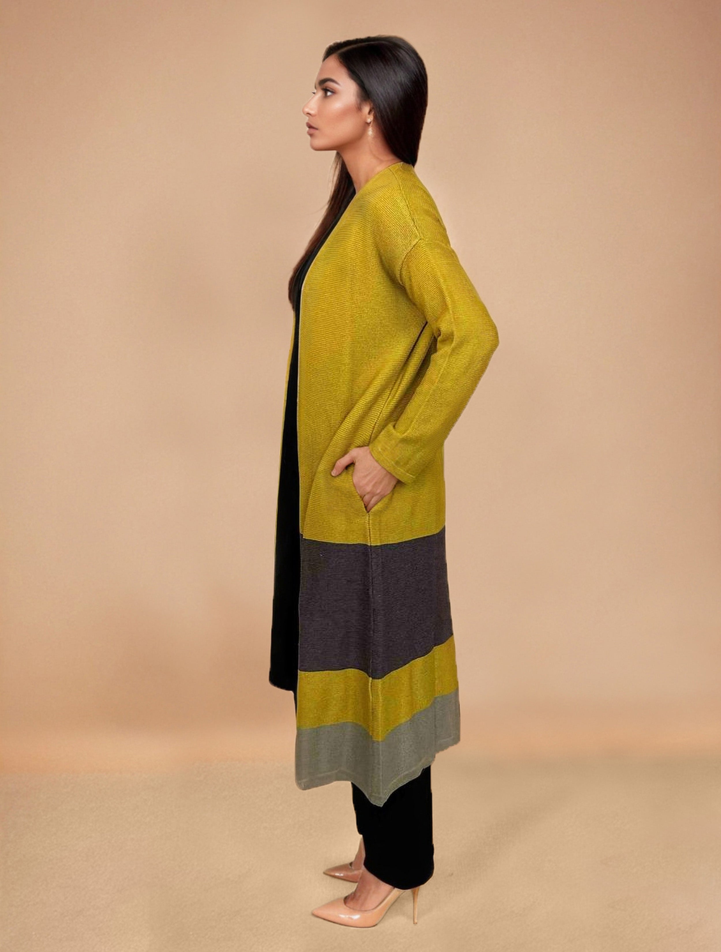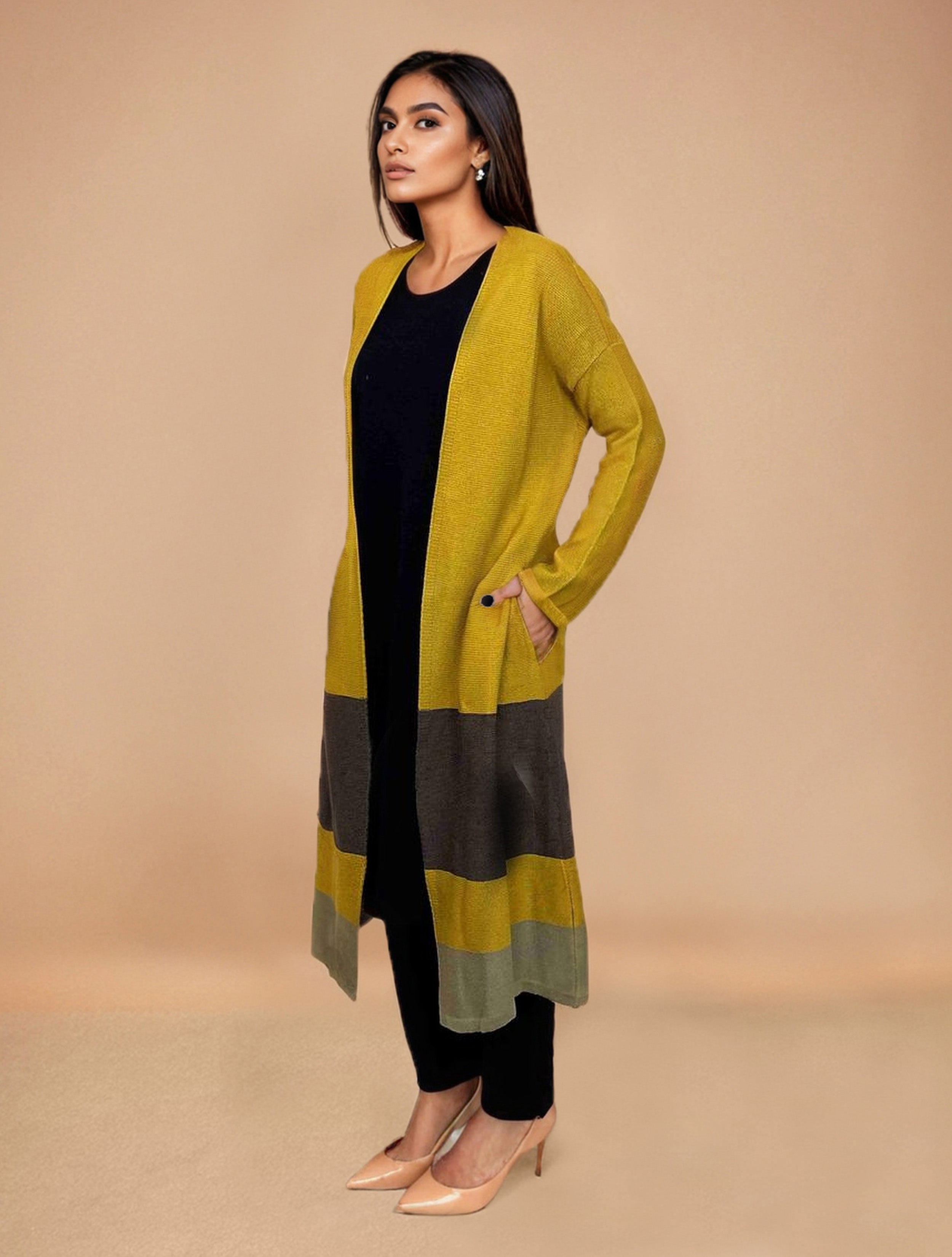 • Elevate your style with this mustard woollen cape, it's an ideal blend of elegance and comfort.