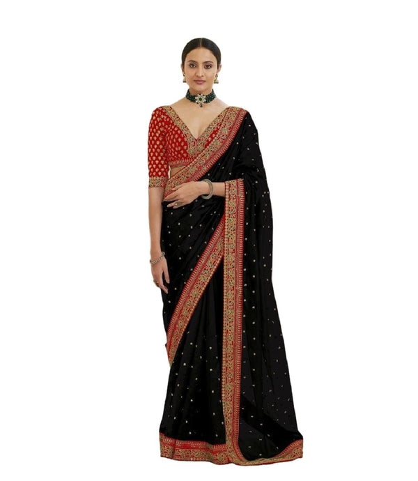 Vamika Black Royal Vichitra Silk Sequins,Coding And Thread Multi Work And Havy Work Border Saree