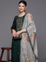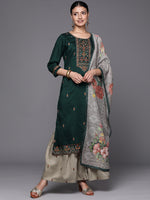 Varanga Women Green Three Quater Sleeve Embroidered Kurta Paired With Sharara And Dupatta