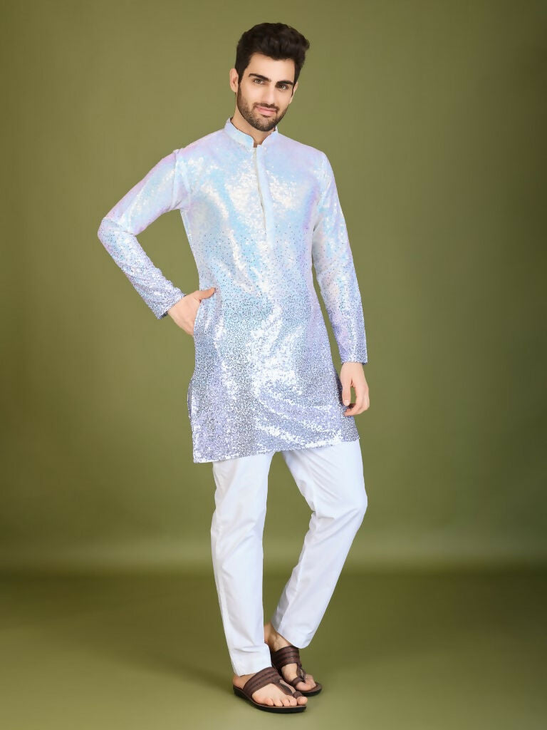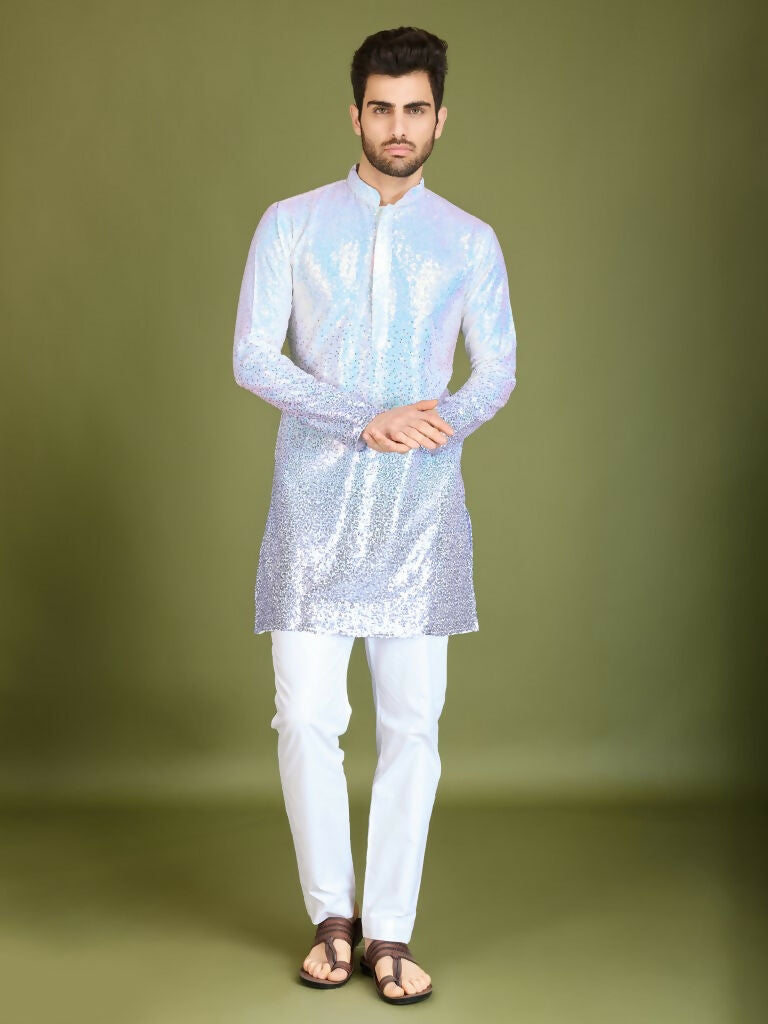 Vastranavya Ombre Purple Premium Real Georgette Thread Sequence & Embroidery work Kurta
