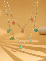 Ruby Raang’s beaded green and pink motif necklace is a vibrant expression of cultural elegance and handcrafted beauty. Adorned with rich green beads and delicately designed pink enamel motifs, this necklace is brought to life by the skilled hands of marginalized women artisans. Accented with a radiant gold-plated finish and made using sustainable practices, it blends festive charm with ethical fashion. Perfect for celebrations or adding color to everyday ethnic wear, this piece carries a story of empowerment, heritage, and conscious luxury.Styling Tip:Pair it with a solid-colored outfit in shades like ivory, mustard, or deep green. A sleek bun or soft braid will highlight its playful colors and detailed motifs.