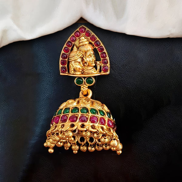 JS Fashion shiv parvati Designer Golden Clustered Pearl High Gold Polish Temple Jhumka Earring