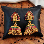 Add a divine touch to your festive look with these Designer Temple Jhumka Earrings, beautifully crafted in high gold polish and adorned with clustered pearls. Perfect for weddings, pujas, and ethnic occasions, these earrings blend sacred charm with elegant design.