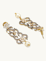 This jewellery set consists of a necklace and a pair of earrings. 22 k Gold-Plated pearl choker necklace, has a white cubic zirconia-studded and pearl beaded details. Secured with a S-hook closure. A pair of matching drop earrings, each secured with a post-and-back closure.