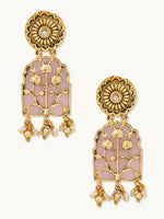 22K Gold-toned intricate floral motif long necklace, has white and golden beads with enamel details. Secured with a drawstring closure. A pair of matching drop earrings, each secured with a post-and-back closure. This comes with 1 year plating warranty, anti-tarnish and hypoallergenic for lasting shine and comfort.