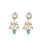 Nuyug 22K Gold Plated Pearl Empress Flora Green Stone Drops Necklace Set