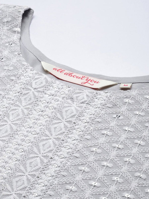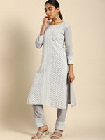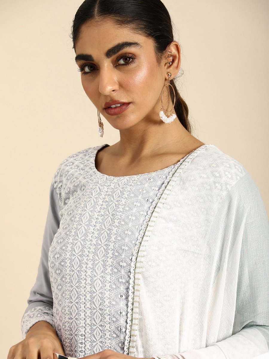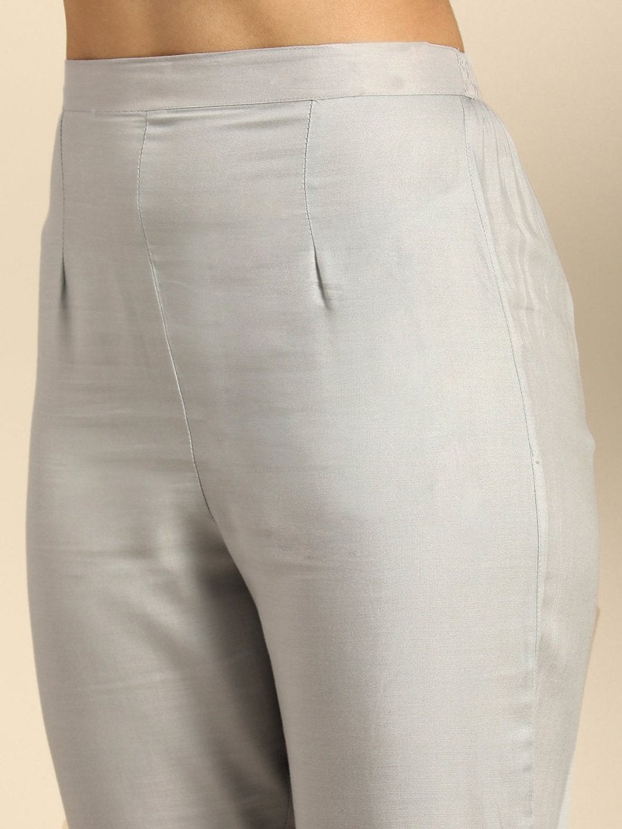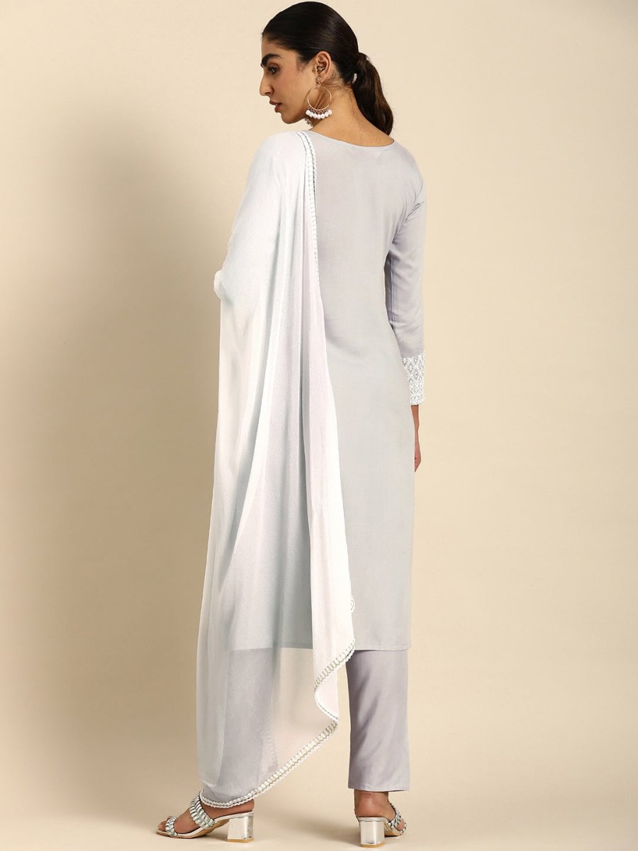 Grey embroidered Kurta with Trousers with dupatta