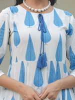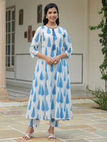 Aramya Flared Soft Cotton Foliage Print Women's Kurta Set - Blue