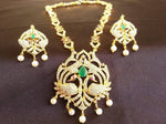Latest Green Beaded AD Peacock Bridal Necklace Set