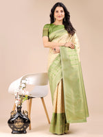 Astita Cream & Light Green Banarasi silk Woven Zari Work Traditional Tassel Saree - Default Title
