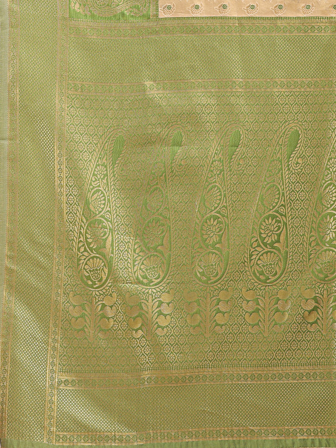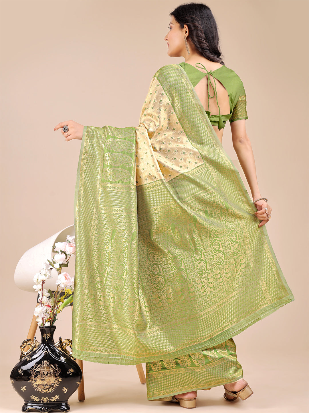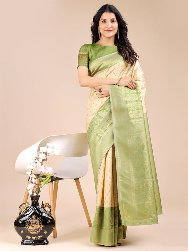 Astita Cream & Light Green Banarasi silk Woven Zari Work Traditional Tassel Saree - Distacart