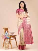 Astita Cream & Magenta Banarasi silk Woven Zari Work Traditional Tassel Saree - Default Title