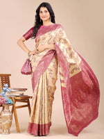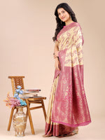 Astita Cream & Magenta Banarasi silk Woven Zari Work Traditional Tassel Saree