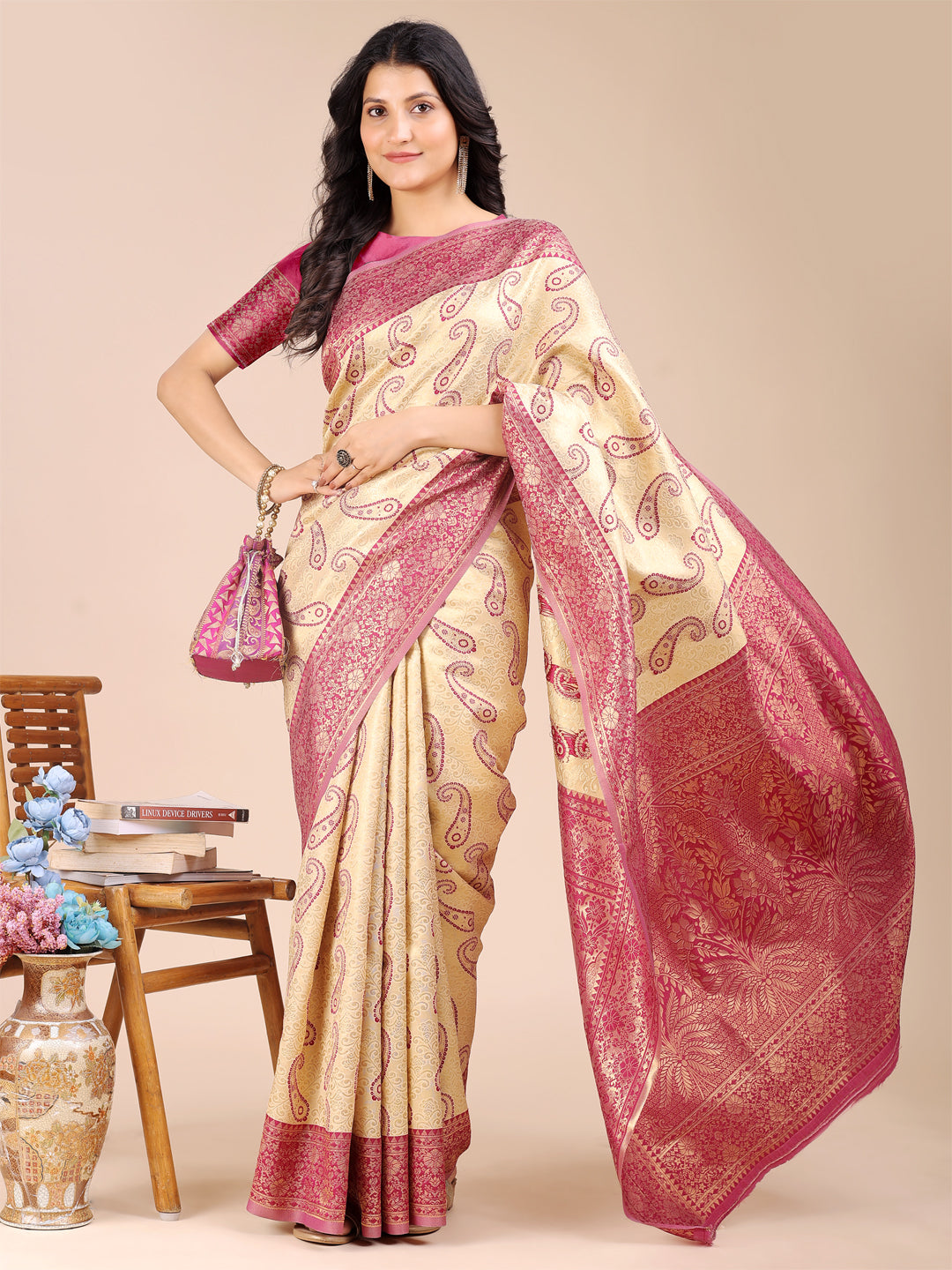 • Saree Color: Cream & Magenta