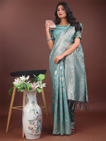 Astita Elegant Sea Green Linen Cotton Saree with Silver Zari - Perfect Blend of Comfort & Charm - Distacart