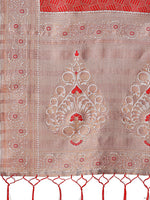 Astita Graceful Red & Beige Lichi Silk Saree with Elegant Woven Pallu - Timeless Beauty for Every Occasion - Distacart