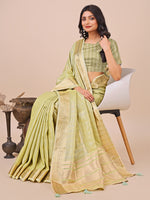 Astita Light Green Organza Woven Zari Work Traditional Tassel Saree