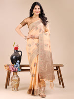 Astita Peach Cotton Woven Zari Work Traditional Tassel Saree - Distacart