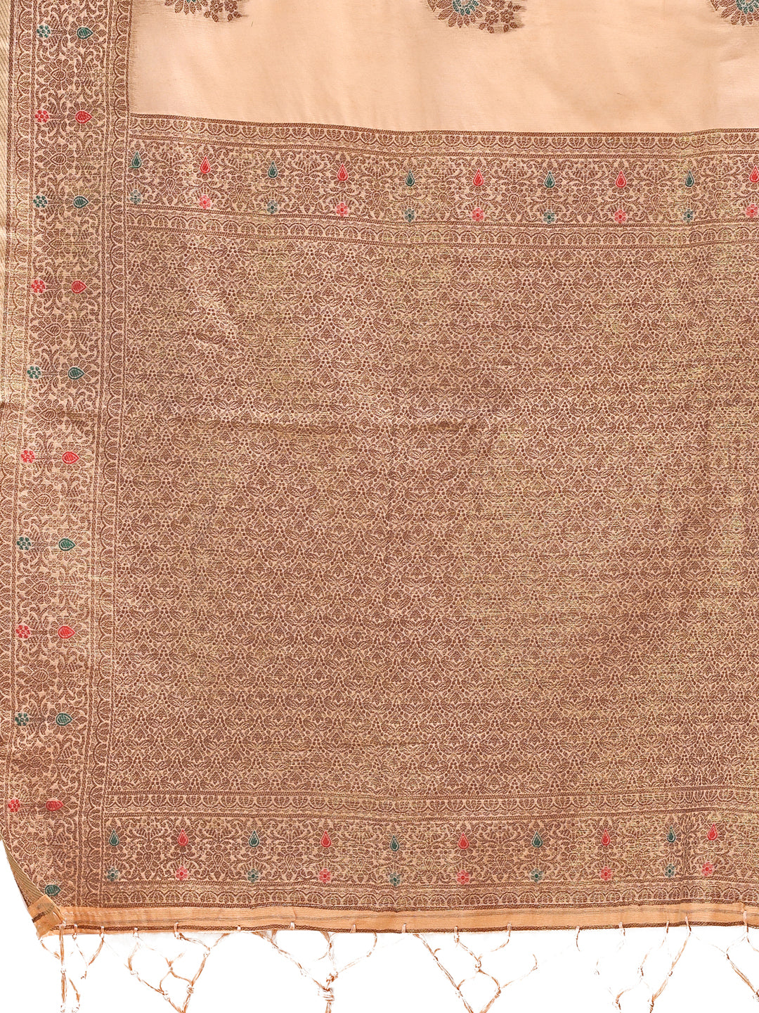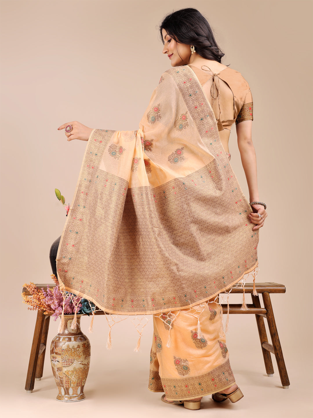 Astita Peach Cotton Woven Zari Work Traditional Tassel Saree