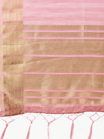 Astita Peach Organza Woven Zari Work Traditional Tassel Saree