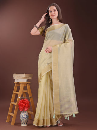 Astita Elegant Light Green Organza Saree with Golden Zari Border - Festive & Office Wear Saree with Blouse Piece