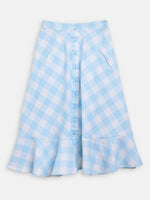 Ahalyaa Sky Blue Rayon Checked Kids Top With Skirts For Girls - 2-3Y