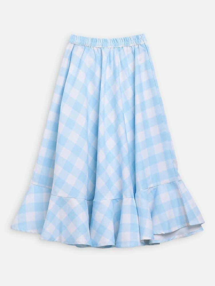 Ahalyaa Sky Blue Rayon Checked Kids Top With Skirts For Girls