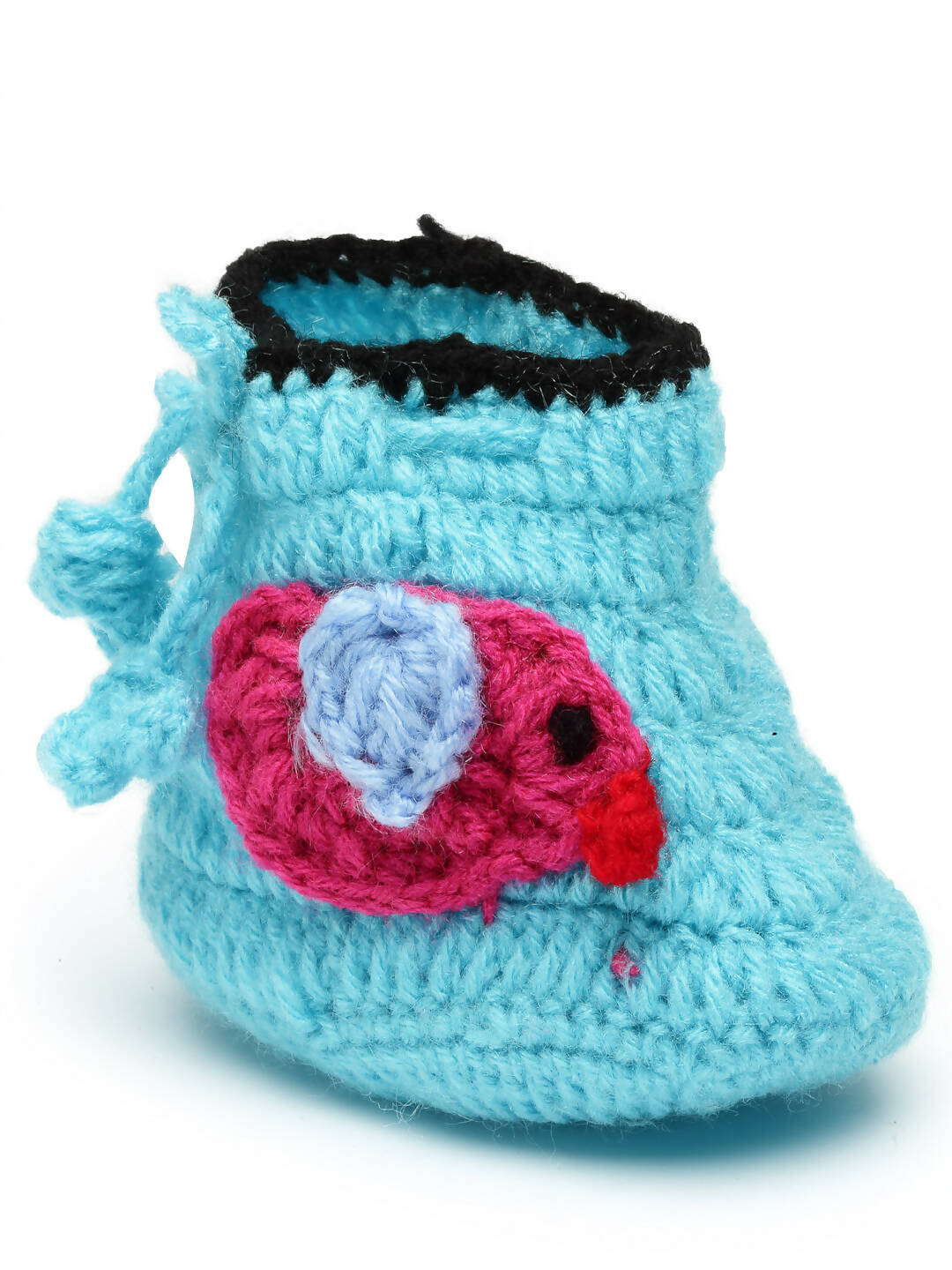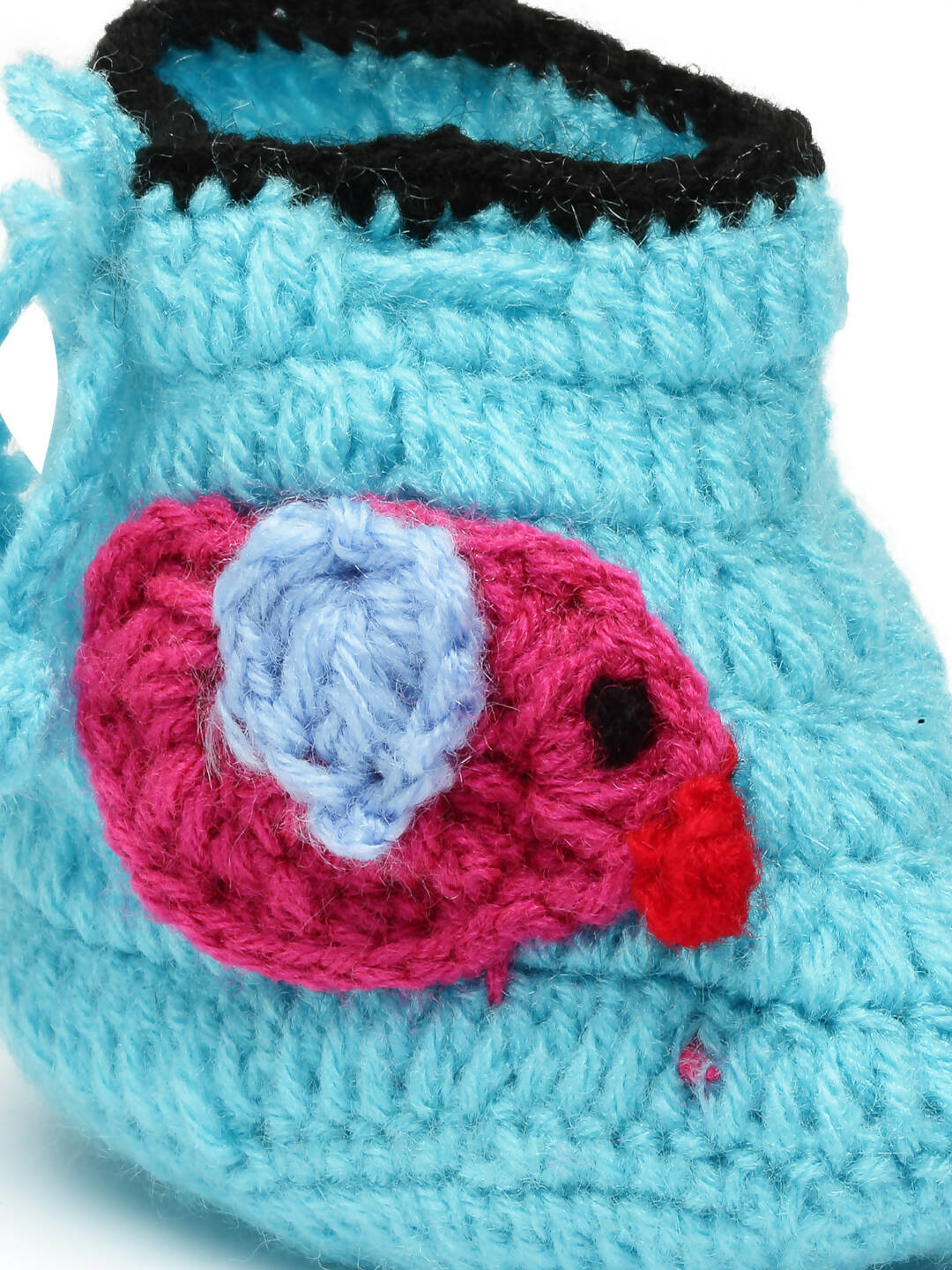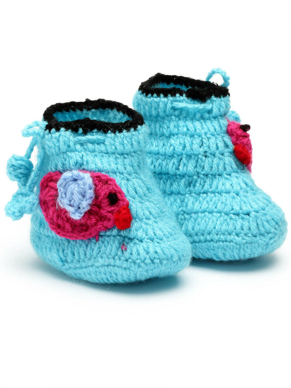 Chutput Kids Woollen Hand Knitted Bird Detailed Booties - Blue - 0-3 M