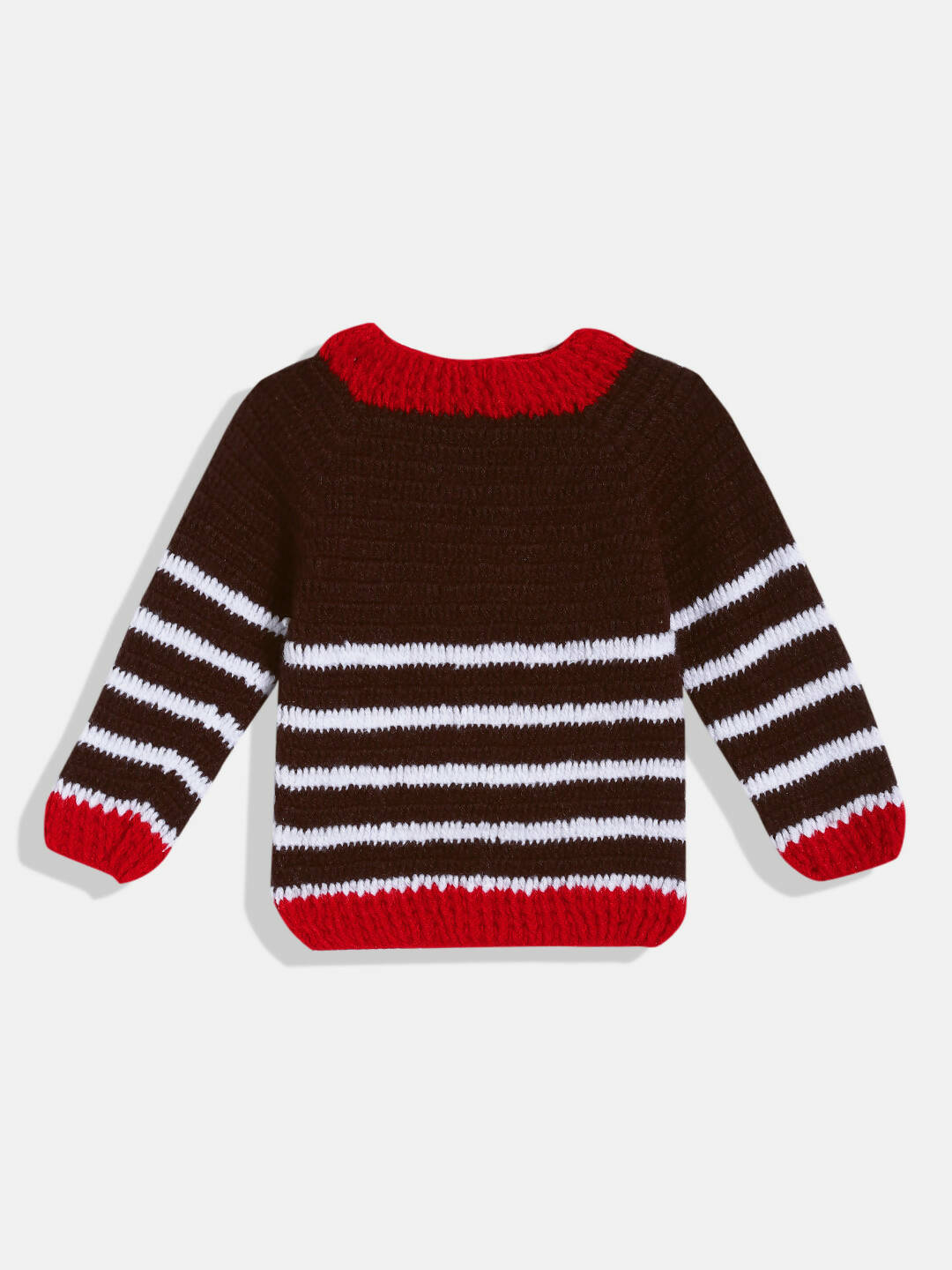 Chutput Kids Woollen Hand Knitted Full Sleeves Striped And Devil Heart Detail Sweater For Baby Boys - Brown