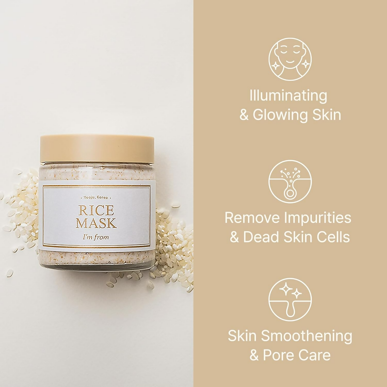 I'm From Korea Rice Mask How to use: 1) After cleansing, dispense an appropriate amount and gently apply over the face. 2) Gently massage from chi...