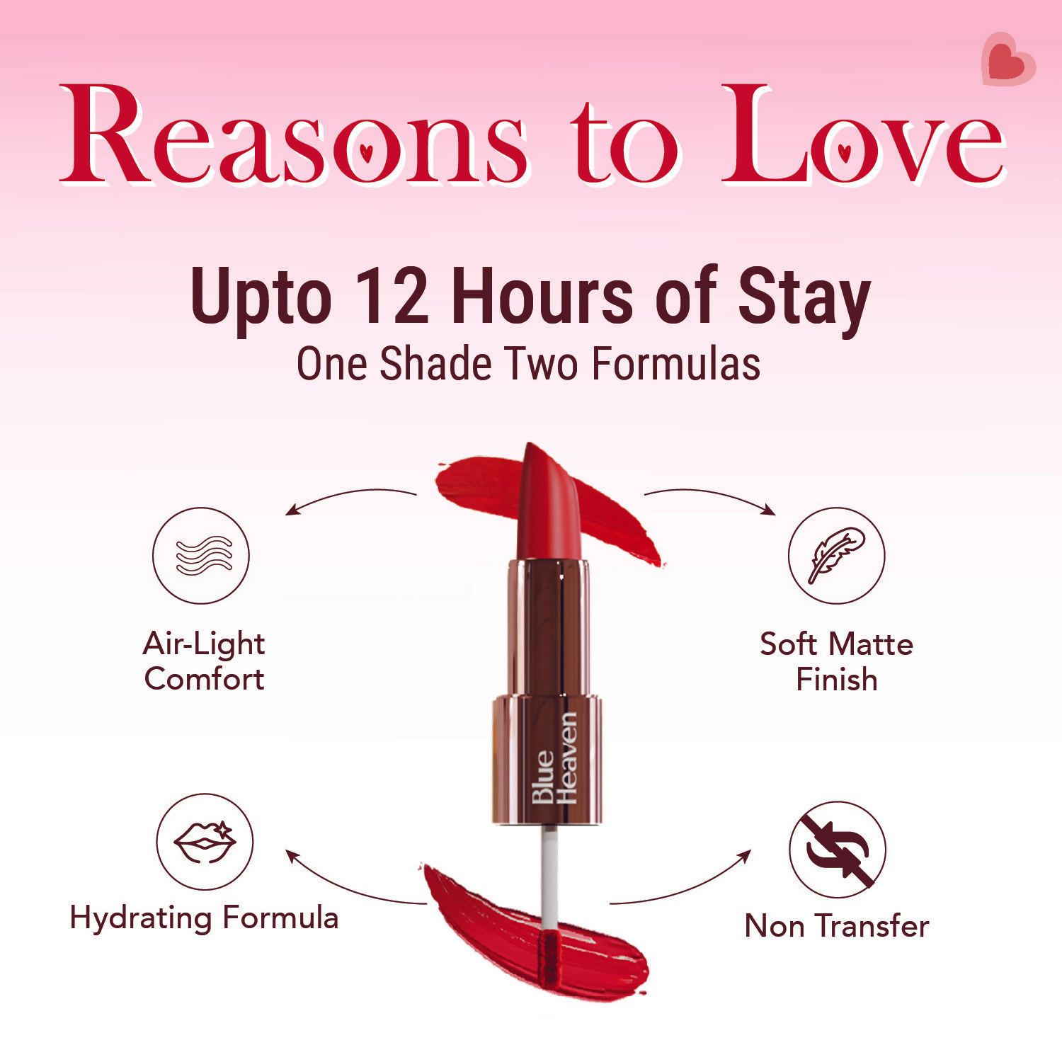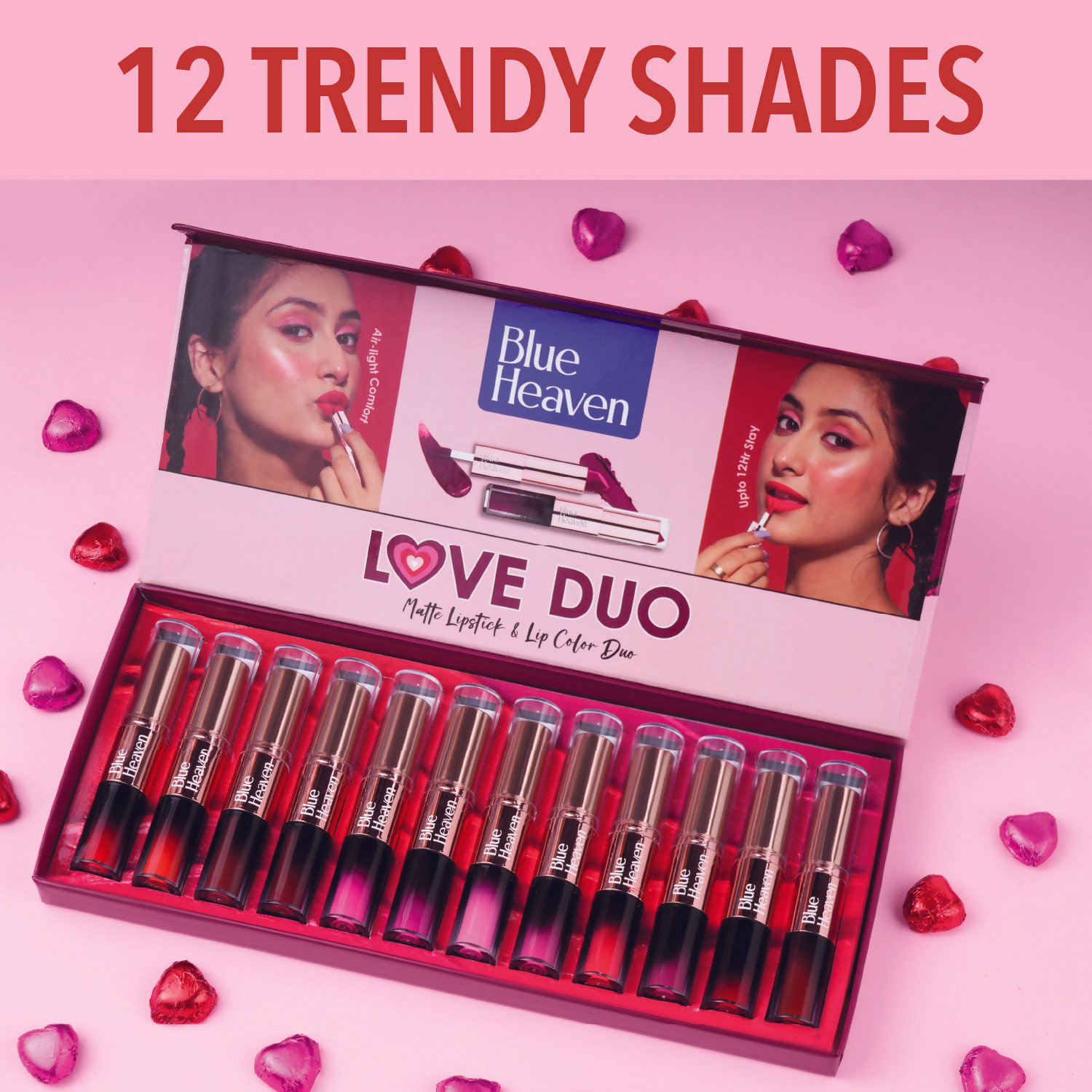 Blue Heaven Love Duo 2 In 1 Dual Sided Lipstick - 14Ingredients:Isododecane, Aqua, Approved Pigments, Bentonite, Trimethylsiloxysilicate, Dimethico...
