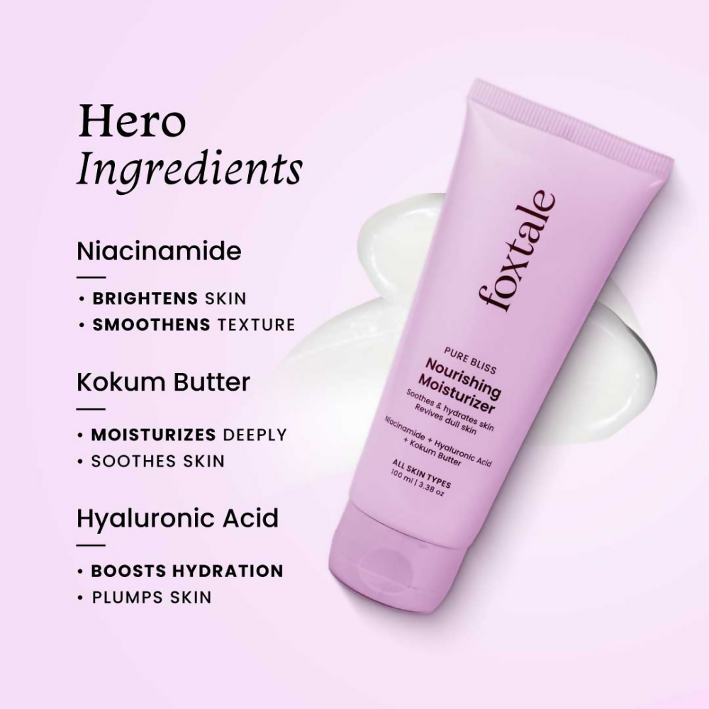 Foxtale Nourishing Moisturiser With Niacinamide & Vit E For 24Hr Hydration About the Product:Foxtales Daily Moisturizer is infused with Kokum b...