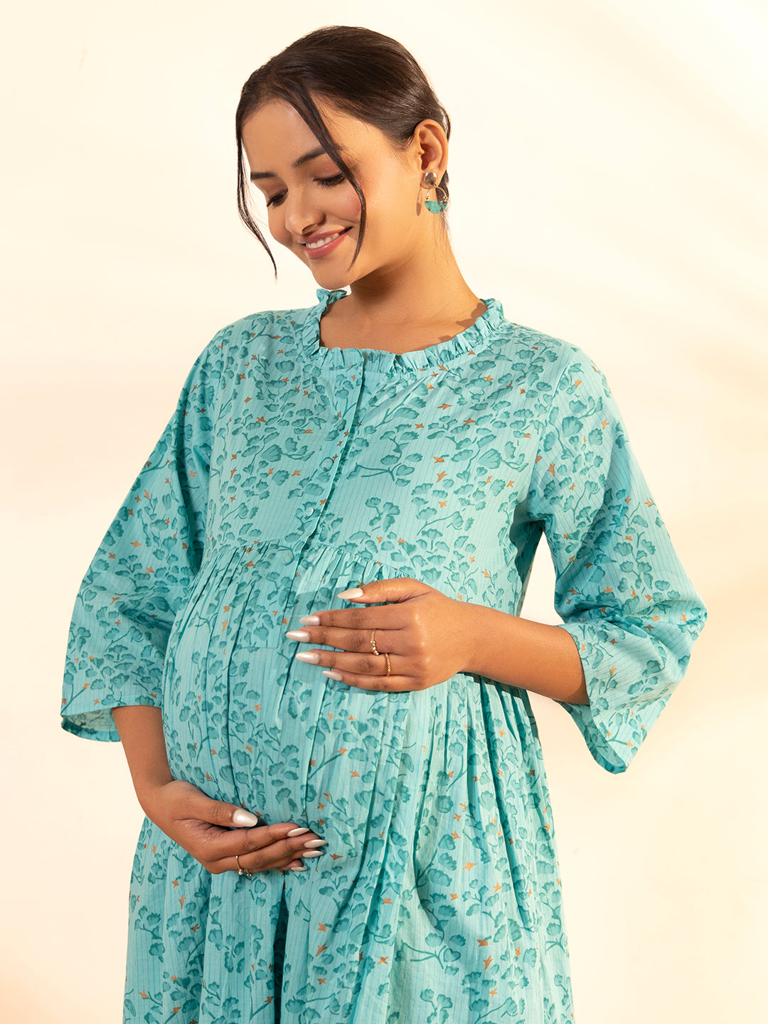 Janasya Sea Green Cotton Floral Printed Casual Maternity Set Top color: Sea Green Top Fabric: Cotton Top Pattern: Floral Printed Occasion: Casu...
