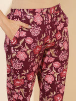 Janasya Women's Purple Cotton Floral Printed Casual Straight Kurta Set - XS