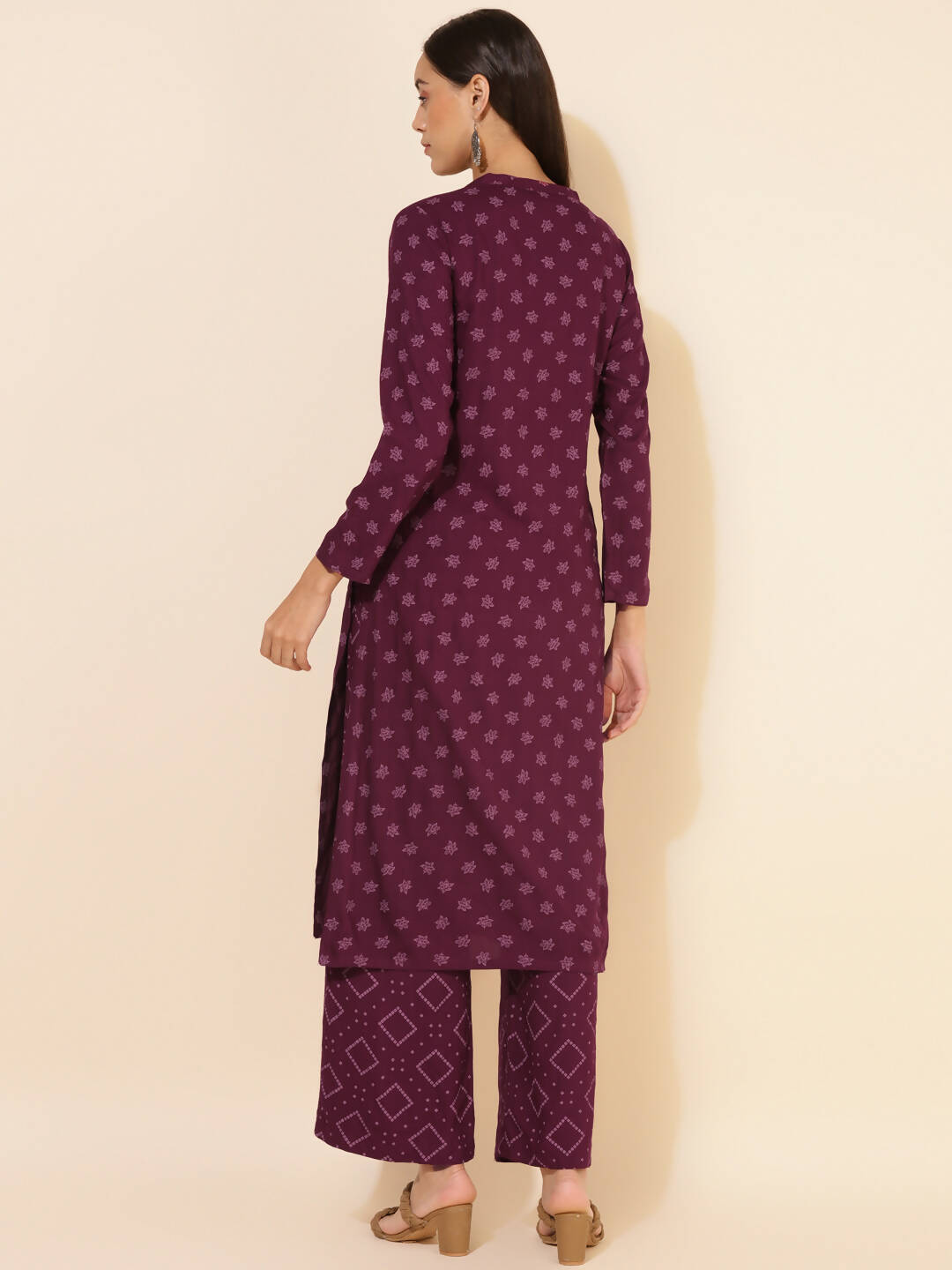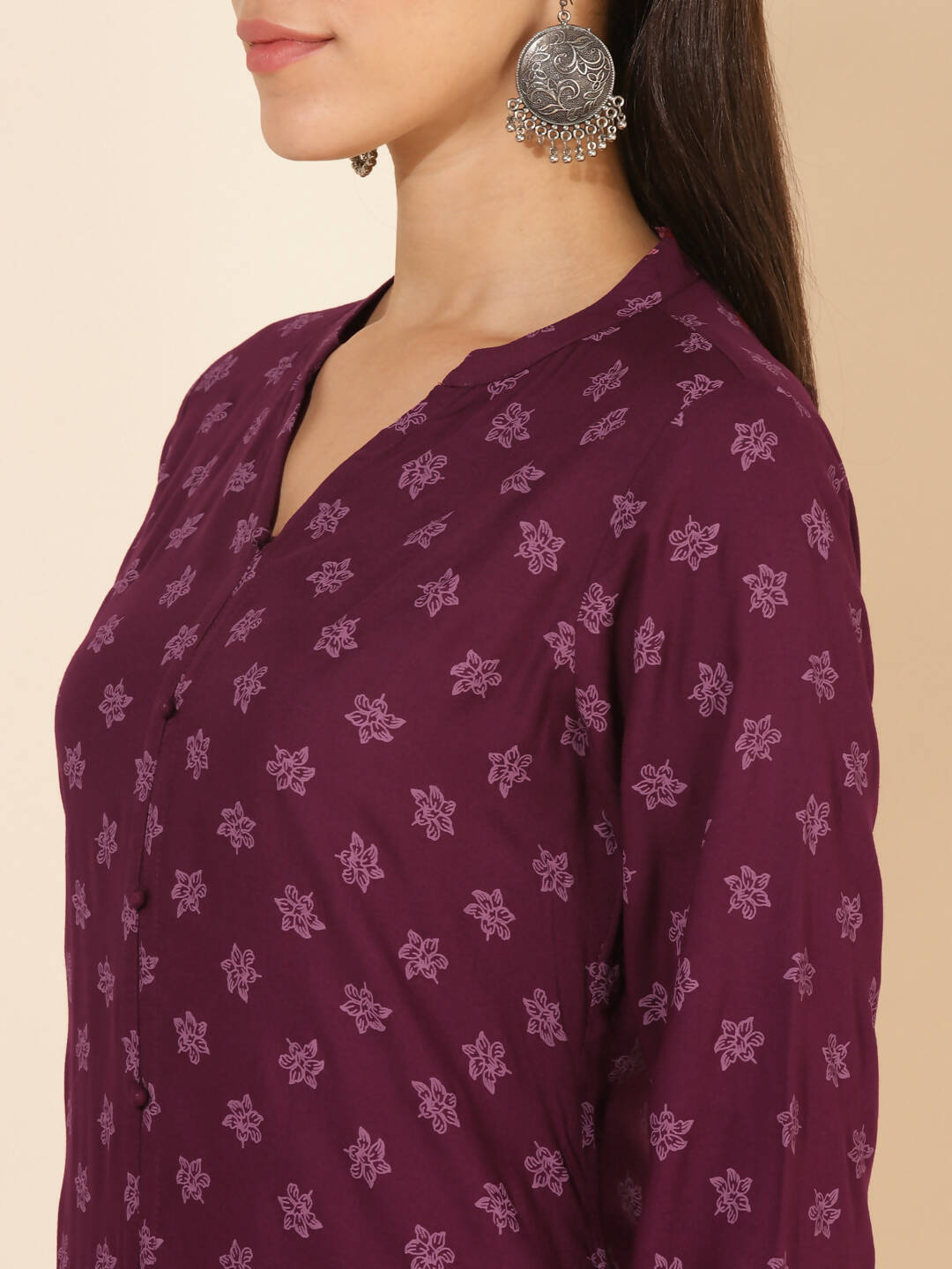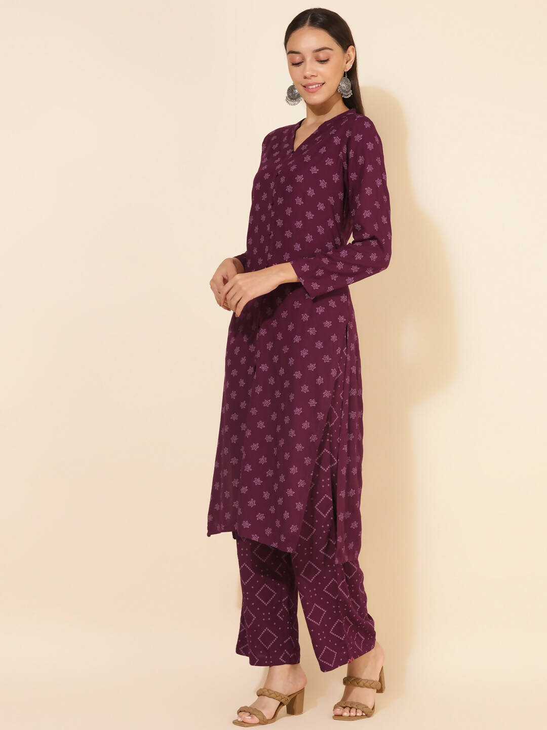 Janasya Women's Wine Rayon Floral Printed Casual Straight Co-ords - Distacart