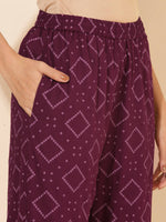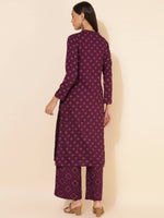 Janasya Women's Wine Rayon Floral Printed Casual Straight Co-ords