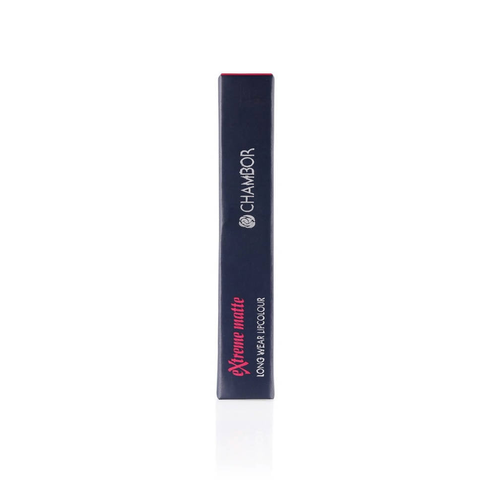 Description: Chambor Extreme Wear Matte Long-Wear Lip Color is an intensely soft and creamy textured lip crayon that provides a velvety matte finish. Its hydrating lightweight formula delivers pigment-rich colour that does not dry out lips, provides super long wear and is waterproof. Enriched with emollients with a combination of unique silicones it ensures long-lasting wear with seamless colour for hours.