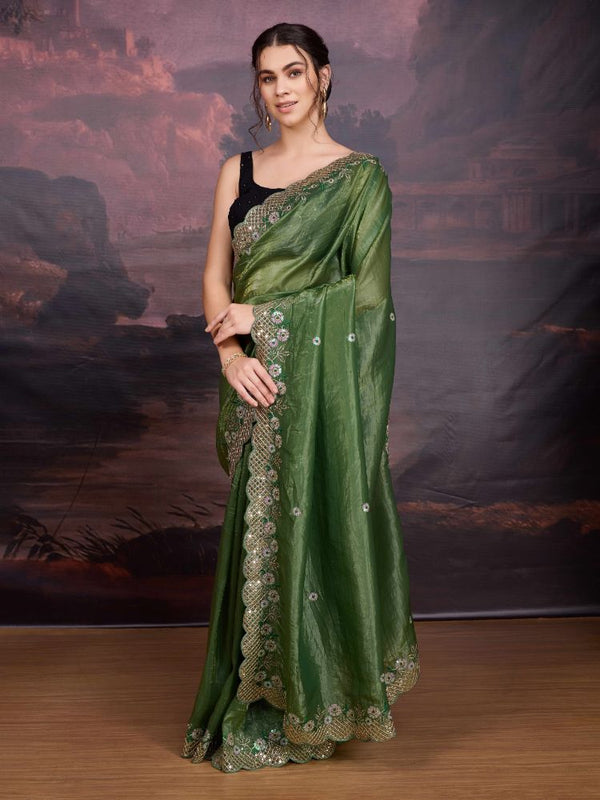Jyoti Fashion Women's Mehendi Art Silk Sequins Embroidered Designer Saree with Blouse - Free Size
