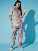 Myshka Women Multi-Printed Bling & Sparkly Co-OrdsMulti Long Sleeves Shirt Collar Viscose Rayon Shirt Trousers Printed Slip-On Bling & Spar...