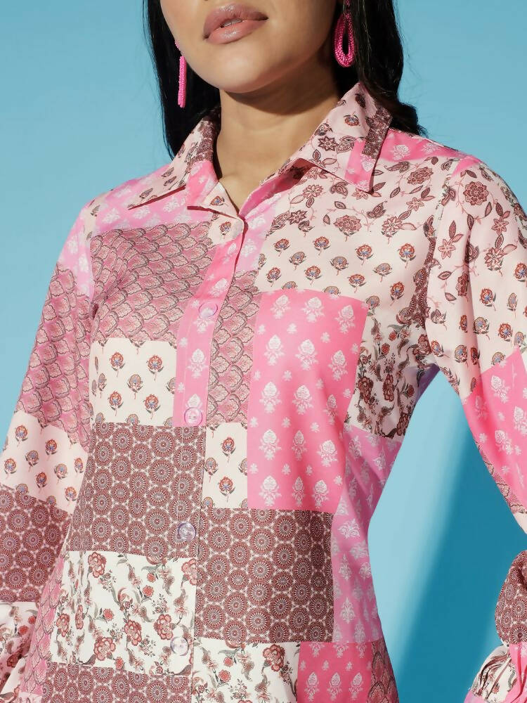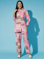 Myshka Women Multi - Printed Bling & Sparkly Co-OrdsMulti Long Sleeves Shirt Collar Viscose Rayon Shirt Trousers Printed Slip-On Bling & Sp...