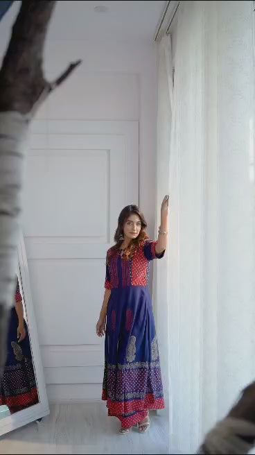 OCCASIONS:  You can adorn this Rayon Block print Anarkali palazzo set as Festive/wedding wear.