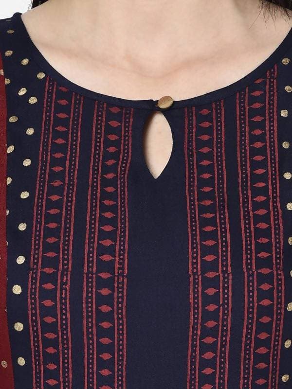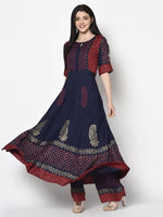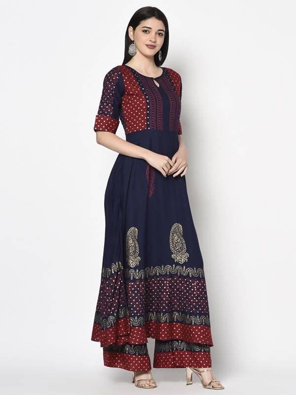 Aniyah Rayon Navy Blue Color Block Print Anarkali Palazzo Set (AN-176K)