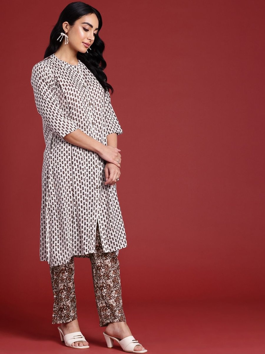 White printed Kurta with Trousers