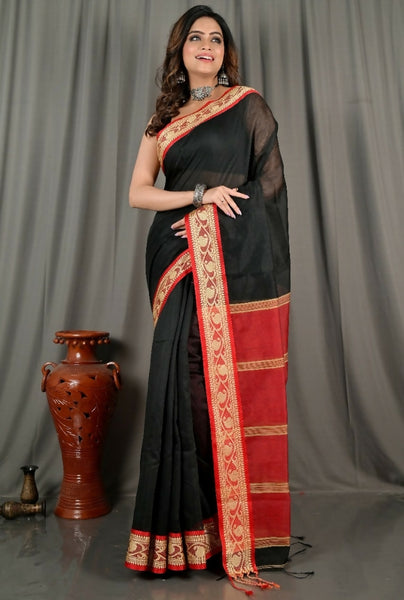 Exclusive Collection Beautiful Khadi Cotton Black Handloom Saree
