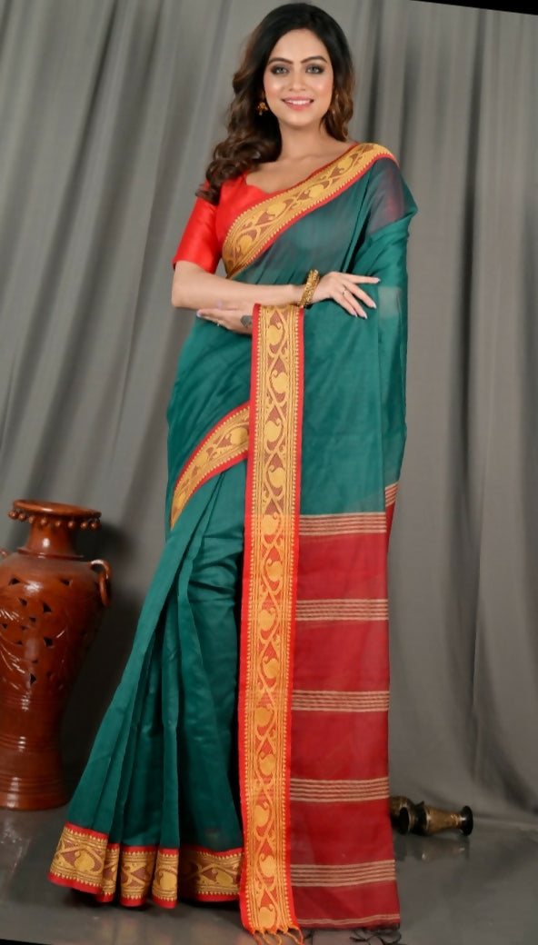 Exclusive Collection Beautiful Khadi Cotton Green Handloom Saree