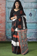 Exclusive Collection Black Multi Beautiful Mulmul Cotton Saree