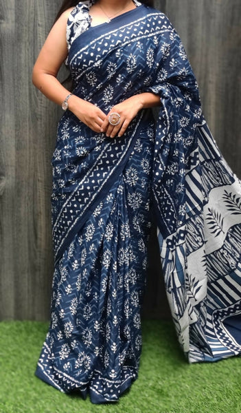 Exclusive Collection Grey Beautiful Mulmul Cotton Saree