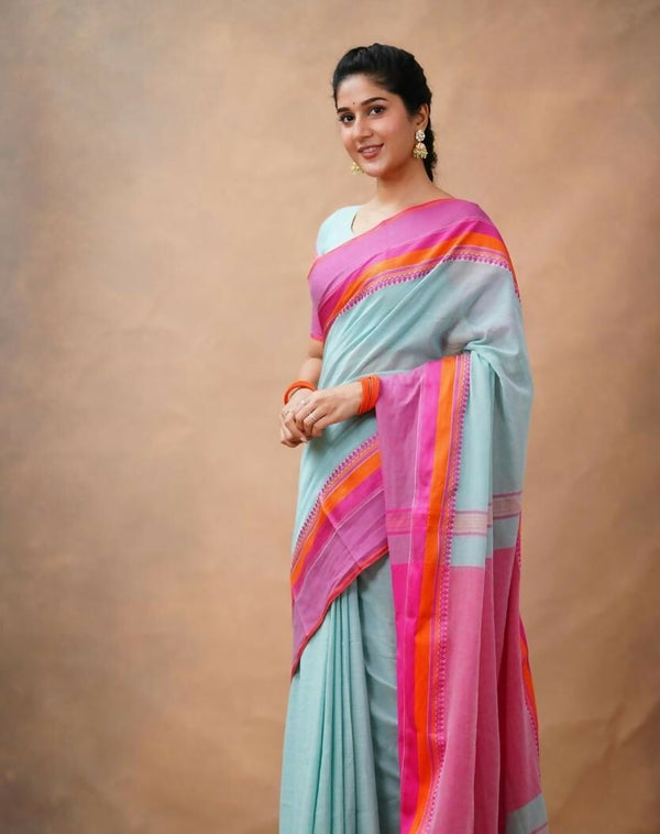 Exclusive Collection Light Blue Beautiful Khadi Cotton Handloom Saree